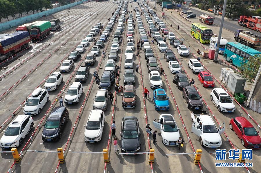 1月19日,車輛在??谛阌⒏圯喍纱a頭等待登船(無人機照片)。 當日是春運第10天,瓊州海峽進入春運進出港高峰。據(jù)海南港航控股有限公司數(shù)據(jù),截至18日,海口市兩港口春運累計進出港旅客54.89萬人次,進出港車輛13.32萬輛次。18日單日進出港旅客9.75萬人次,同比增長43.9%,進出港車輛2.3萬輛車次,同比增長45.5%。 新華社記者 郭程 攝
