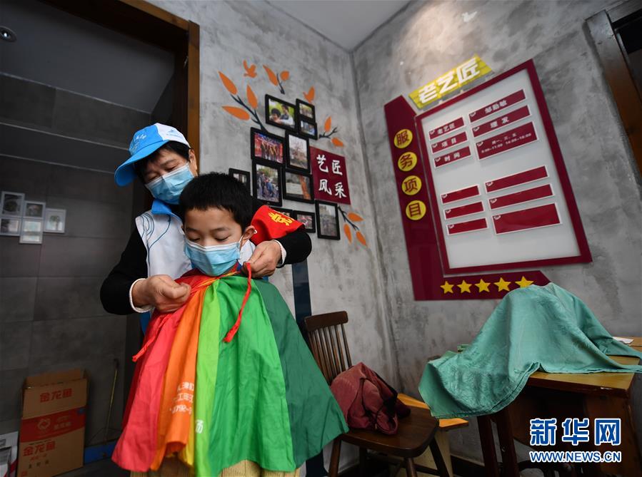 2月24日,鄒勤敏在南昌市青山湖區(qū)商苑社區(qū)服務中心為一名小朋友理發(fā)。新華社記者 胡晨歡 攝