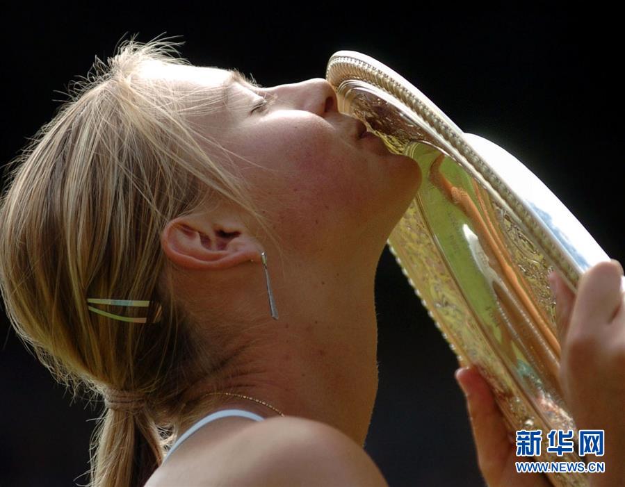 圖為2004年7月3日,莎拉波娃在溫布爾登網(wǎng)球錦標賽女單決賽中戰(zhàn)勝美國選手小威廉姆斯,奪得冠軍。