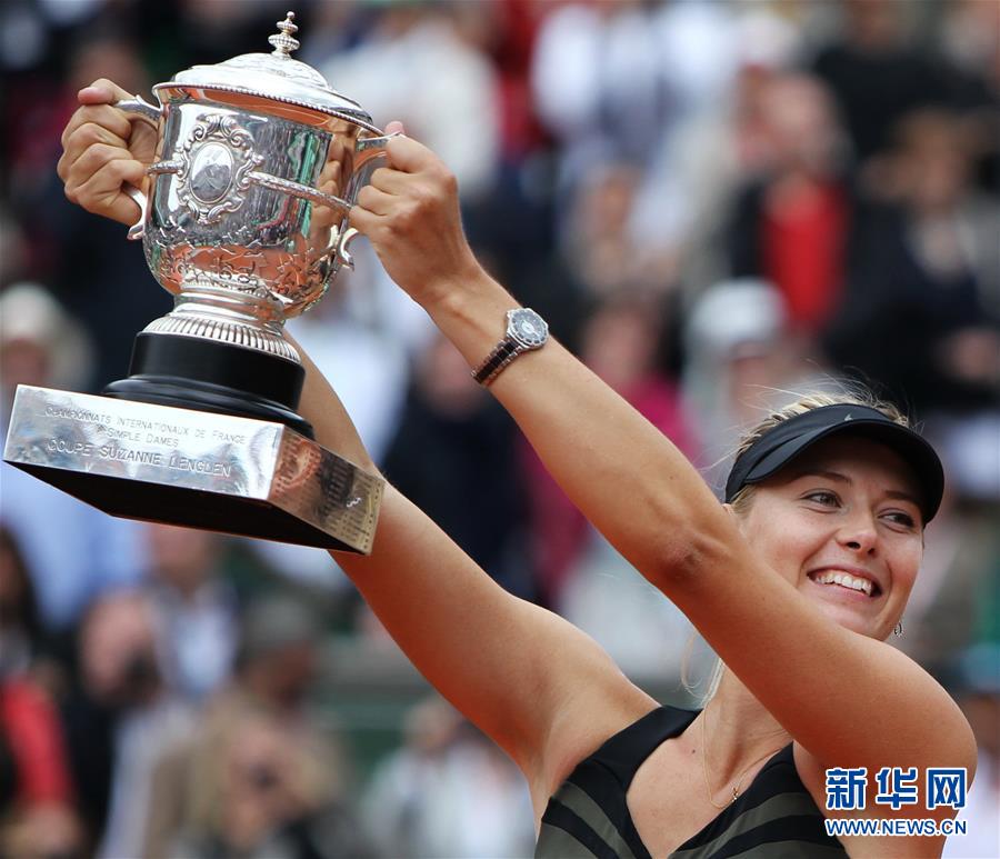 圖為2014年6月7日,莎拉波娃在法國網(wǎng)球公開賽女單決賽中戰(zhàn)勝羅馬尼亞選手哈勒普,奪得冠軍。 新華社記者陳曉偉攝