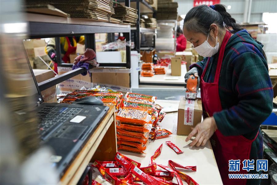 2月27日,在秀山(武陵)現(xiàn)代物流園區(qū)的電商云倉內(nèi),工人在打包包裹。地處重慶市秀山縣的秀山(武陵)現(xiàn)代物流園區(qū),是渝湘黔三省市交界地區(qū)的區(qū)域性物流中心。重慶市秀山縣在做好新冠肺炎疫情防控工作前提下,當(dāng)?shù)卣e極幫助電商、物流企業(yè)解決招工、運輸、銷售等方面的實際問題,推動秀山(武陵)現(xiàn)代物流園區(qū)快速進(jìn)入全面復(fù)工復(fù)產(chǎn)階段。據(jù)介紹,隨著物流園區(qū)的電商和物流企業(yè)全面復(fù)工復(fù)產(chǎn),既滿足當(dāng)?shù)厝罕姷奈镔Y供應(yīng),又幫助當(dāng)?shù)剞r(nóng)產(chǎn)品通過電商平臺實現(xiàn)快速銷售。新華社記者劉潺攝