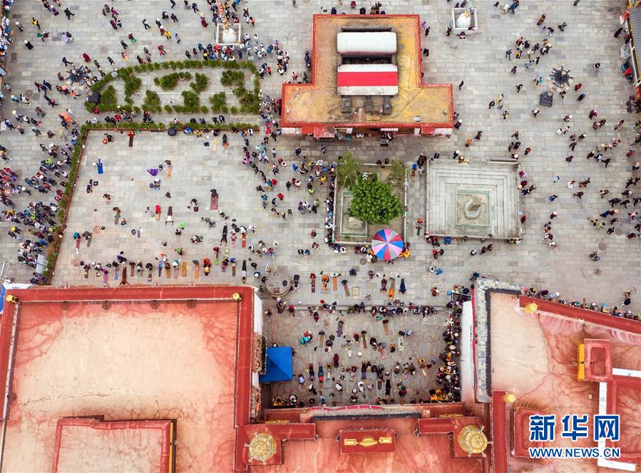 8月10日無(wú)人機(jī)拍攝的大昭寺。新華社記者普布扎西攝
