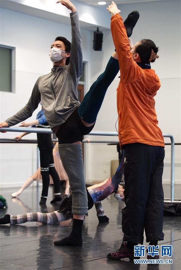 2月29日,在通過網(wǎng)絡(luò)直播的“公益公開課”上,上海芭蕾舞團(tuán)團(tuán)長辛麗麗(前右)在指導(dǎo)團(tuán)員。新華社記者任瓏攝