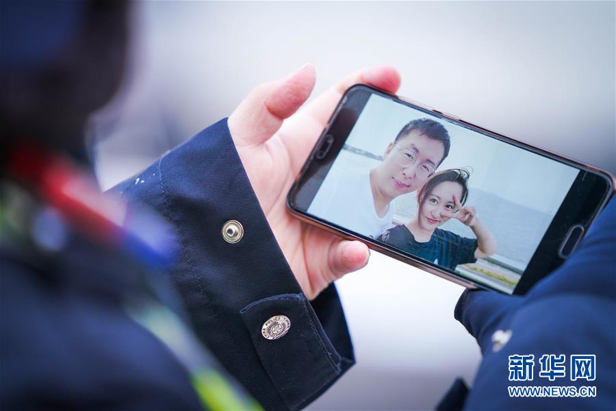 李可心展示手機里父親李論的工作照(3月1日攝)。父親李論是一名民警,負責(zé)對轄區(qū)內(nèi)疑似感染人員居住小區(qū)進行封控、排查工作。新華社記者王松攝