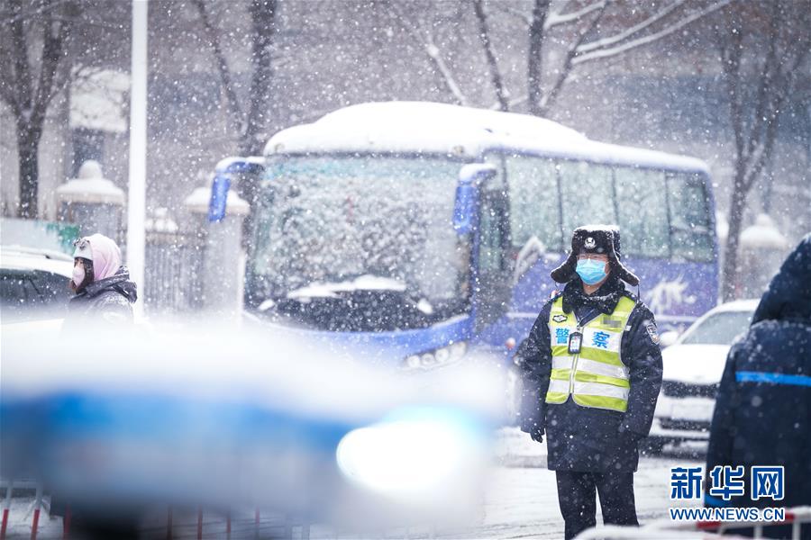 李可心在雪中值守(3月1日攝)。 新華社記者王松攝
