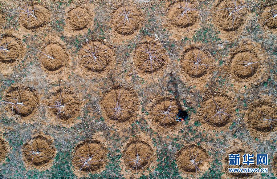 3月4日,武安市馬家莊鄉(xiāng)北果村的村民在修剪果樹(無(wú)人機(jī)照片)。新華社記者王曉攝
