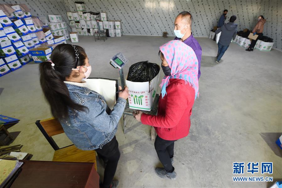 3月4日,在靖遠(yuǎn)縣北灣鎮(zhèn)新坪村農(nóng)貿(mào)市場(chǎng),收購(gòu)商收購(gòu)農(nóng)民采摘的黃瓜。新華社記者 范培珅 攝
