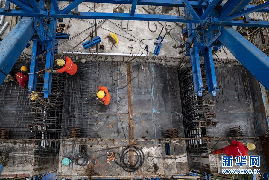 3月5日,工人在中老鐵路南溪河特大橋上施工。近期,中老鐵路玉溪至磨憨段有序復工復產,由中鐵四局承建的中老鐵路全線重點控制性工程——元江特大橋、南溪河特大橋正在加緊施工建設。新華社記者 江文耀 攝