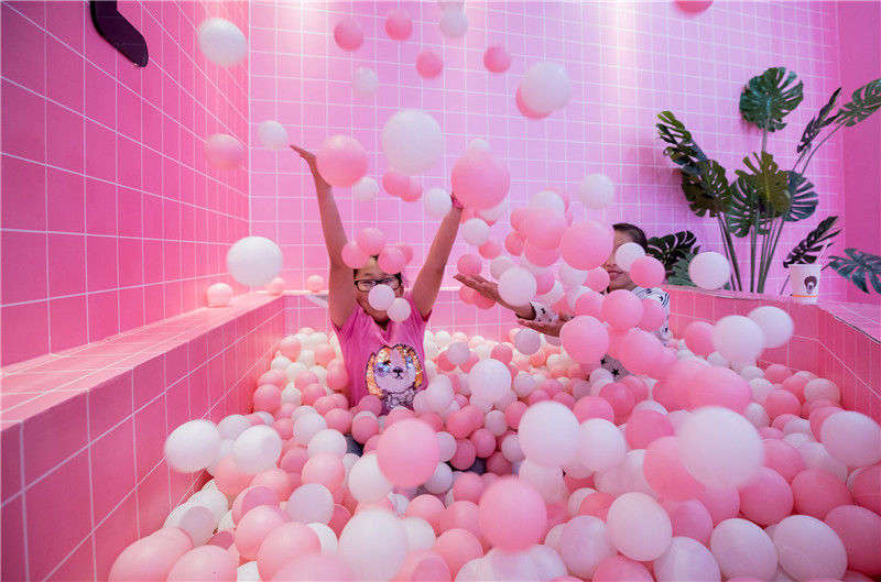 2018年9月20日,呼和浩特玉泉區(qū),市民在夢(mèng)幻love粉色小屋內(nèi)留影游玩。丁根厚/視覺(jué)中國(guó)