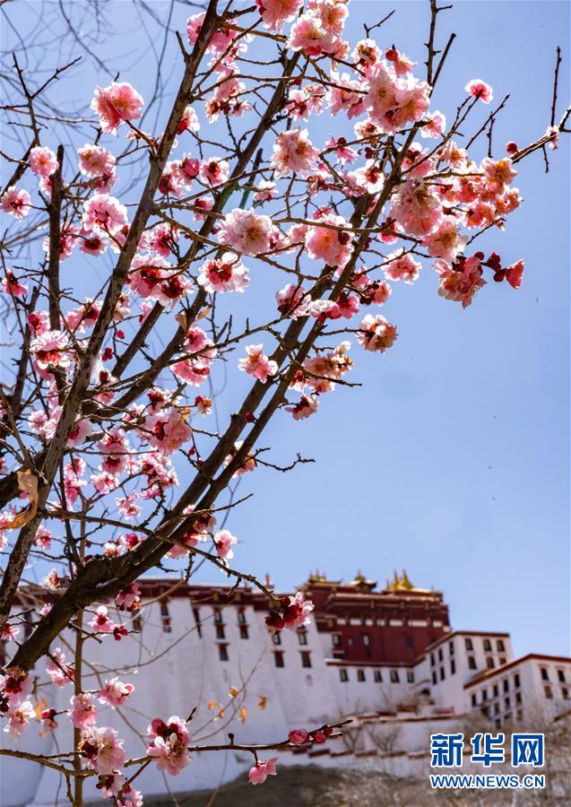 桃花掩映下的布達(dá)拉宮(3月10日攝)。 隨著氣候回暖,西藏的春天悄然到來。在“日光城”拉薩,高原大地從寒冬中漸漸醒來。 新華社記者 普布扎西 攝