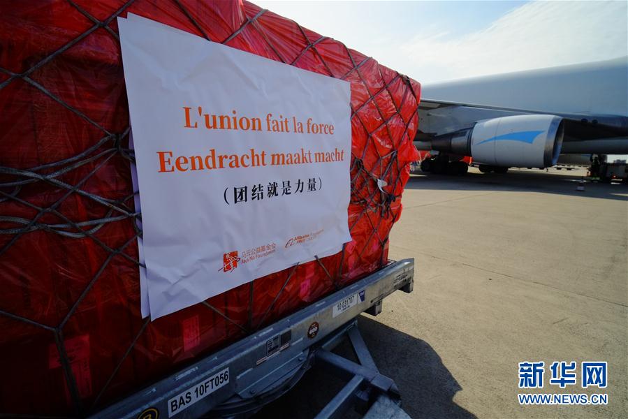 來自中國的30萬只口罩當(dāng)?shù)貢r間16日中午運抵比利時列日機場。 新華社記者 張鋮 攝