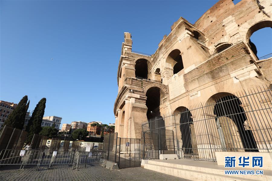 3月16日,在意大利首都羅馬,斗獸場因疫情關(guān)閉。新華社記者程婷婷攝