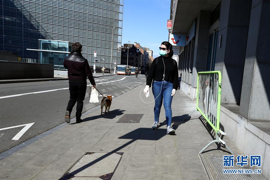 3月18日,在比利時(shí)布魯塞爾,佩戴口罩的行人走在馬路上。 截至17日,比利時(shí)累計(jì)確診新冠肺炎病例1243例,死亡10例,治愈出院15例。比利時(shí)首相維爾梅斯當(dāng)天宣布,從18日12時(shí)起全國范圍內(nèi)將實(shí)施“封城”,結(jié)束時(shí)間暫定為4月5日。根據(jù)全國安全委員會(huì)特別會(huì)議決定,除上下班,購買食品、藥品、就醫(yī)等特定情況外,全國民眾必須待在家中;有條件的企業(yè)必須進(jìn)行遠(yuǎn)程辦公。  新華社記者 張鋮 攝