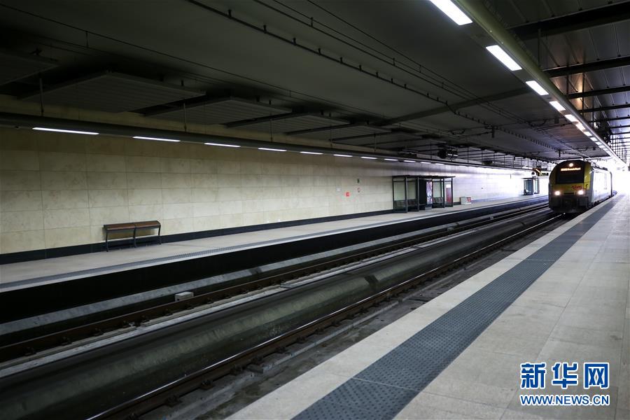 3月18日,在比利時布魯塞爾,舒曼火車站的月臺上空空蕩蕩。  新華社記者 張鋮 攝