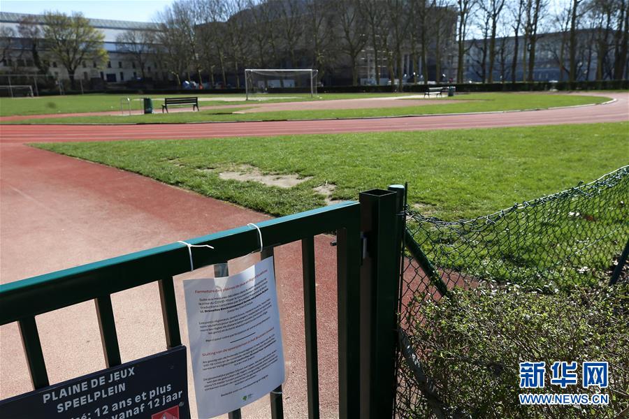 這是3月18日在比利時(shí)布魯塞爾拍攝的一處關(guān)閉的運(yùn)動(dòng)場(chǎng)。 新華社記者 張鋮 攝