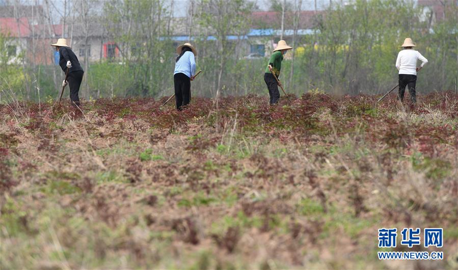 湖北當(dāng)陽市壩陵辦事處群華村農(nóng)民在中藥材白芍田里除草(3月21日攝)。近日,湖北當(dāng)陽市農(nóng)業(yè)生產(chǎn)和農(nóng)產(chǎn)品加工加速恢復(fù)。截至3月19日,當(dāng)陽市86家規(guī)上農(nóng)產(chǎn)品加工企業(yè)復(fù)工復(fù)產(chǎn)率為84.9%,51家農(nóng)業(yè)產(chǎn)業(yè)化重點(diǎn)龍頭企業(yè)有48家復(fù)工復(fù)產(chǎn),占比達(dá)94.1%。新華社記者程敏攝