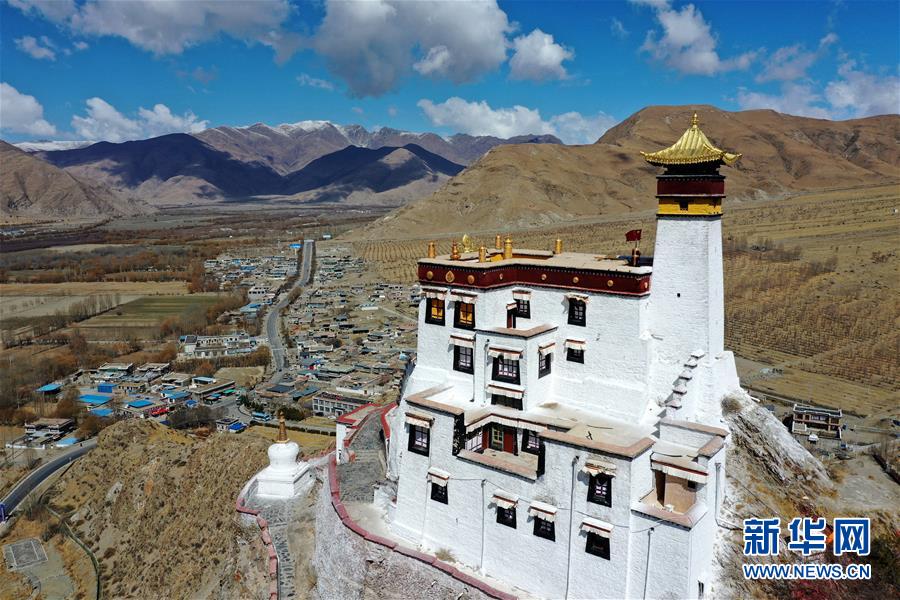 這是3月24日拍攝的西藏第一座宮殿——雍布拉康(無人機照片)。