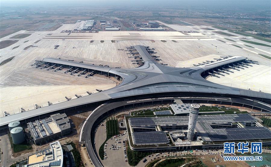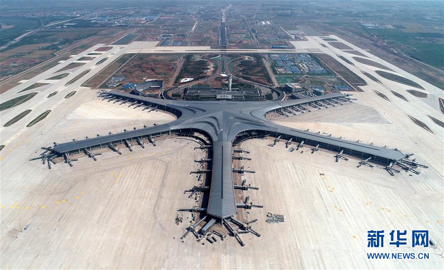2019年6月12日無人機(jī)拍攝的建設(shè)中的青島膠東國際機(jī)場(chǎng)。新華社記者李紫恒攝