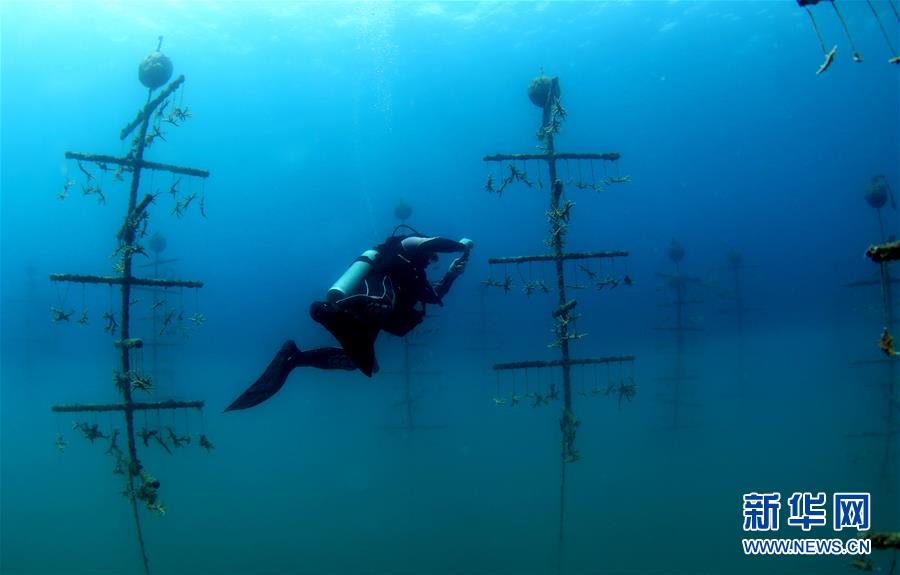 3月28日,在位于海南三亞蜈支洲島旅游區(qū)的海洋牧場,工作人員在進(jìn)行巡護(hù)記錄。近日,位于海南三亞蜈支洲島旅游區(qū)的海洋牧場復(fù)工,海底作業(yè)逐漸恢復(fù)正常,開始進(jìn)行人工魚礁吊裝擺位、水下監(jiān)控清理以及日常巡護(hù)等工作。據(jù)介紹,人工魚礁有利于魚類種類增加和數(shù)量提高,蜈支洲島海域海洋牧場人工魚礁表面附著珊瑚、貝類、藻類等生物種類達(dá)120余種。新華社記者楊冠宇攝