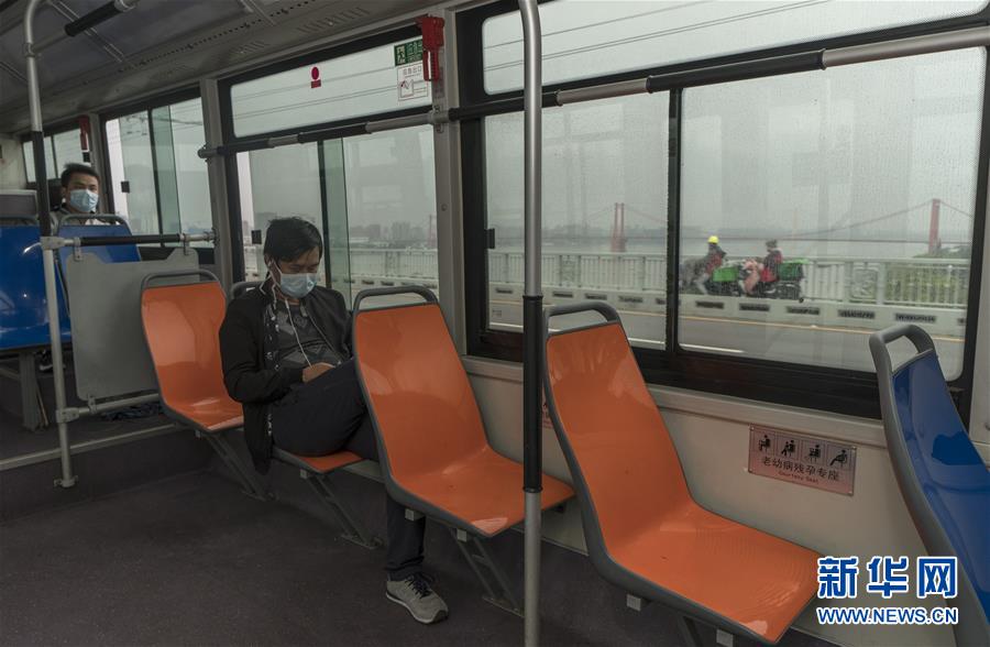 3月25日,61路公交車行駛在武漢長江大橋上。新華社記者費(fèi)茂華攝