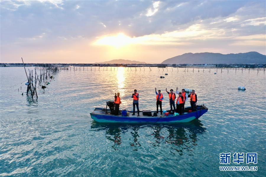 3月26日,福建漳州東山縣岐下村村民陳炎松(左一)駕駛著小舢板載著客人返回碼頭(無人機(jī)照片)。新華社記者姜克紅攝