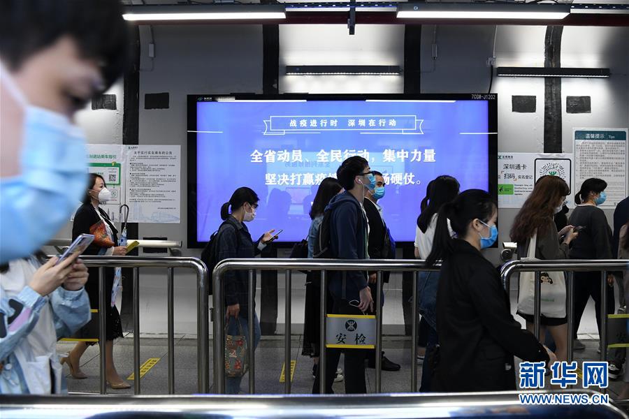 3月18日晚高峰時段,在深圳地鐵車公廟站,乘客排隊進(jìn)站。新華社記者梁旭攝
