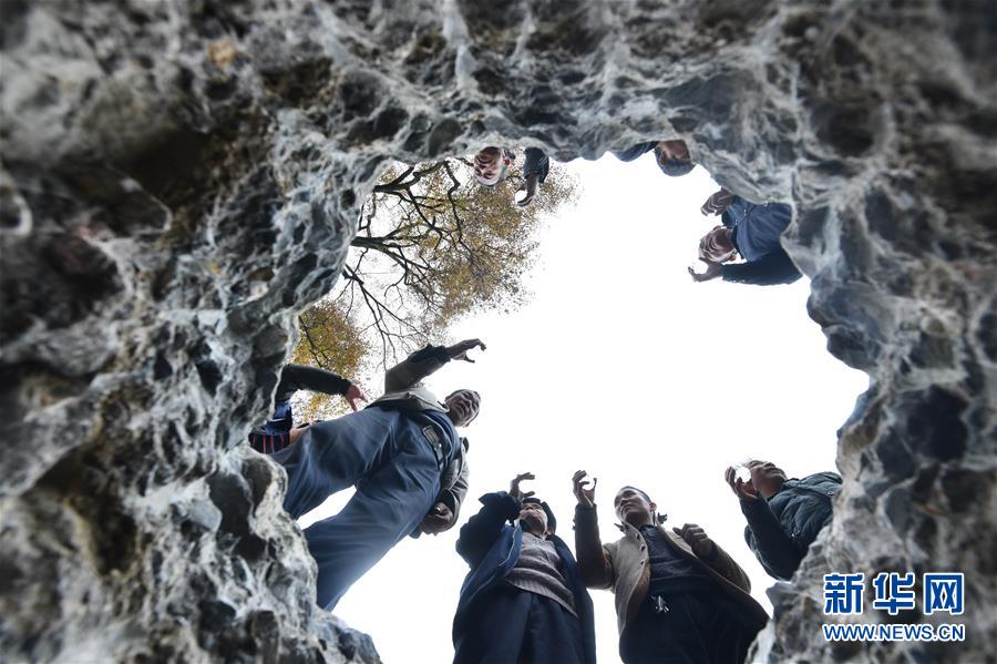 烏英苗寨村民在立蘆笙柱前商量相關事宜(12月22日攝)。新華社記者黃孝邦攝