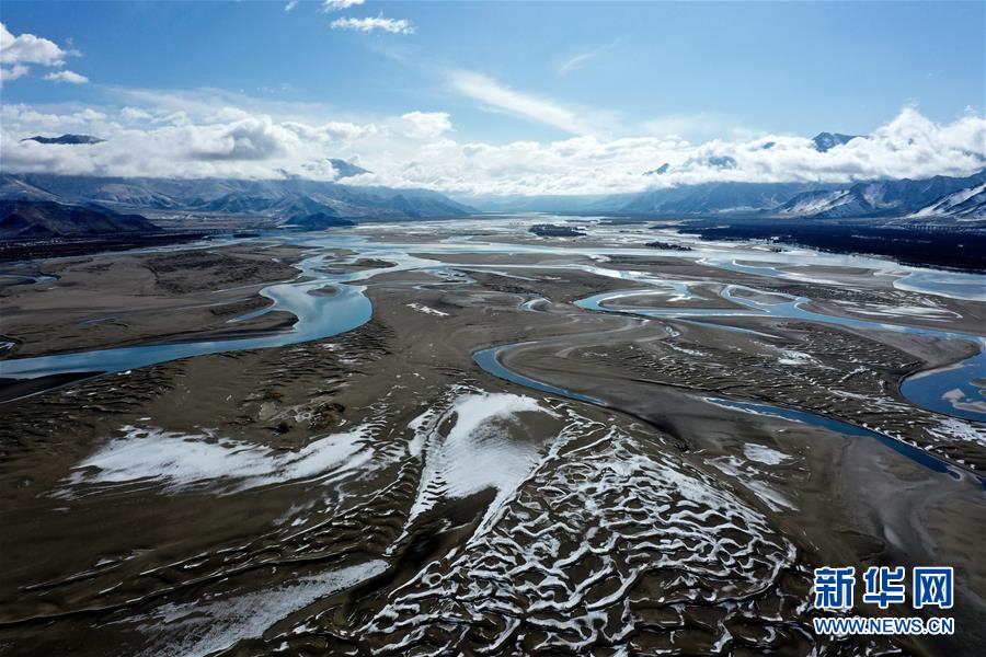 這是3月24日拍攝的雅魯藏布江雪景(無人機照片)。新華社記者詹彥攝