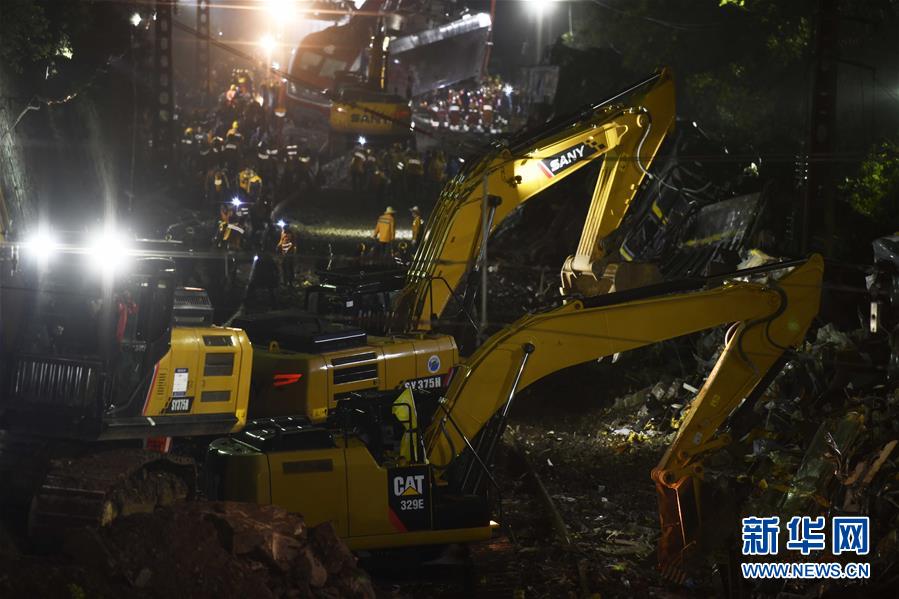 3月30日晚,工程機械在京廣鐵路郴州段脫軌事故現(xiàn)場作業(yè)。新華社記者李尕攝