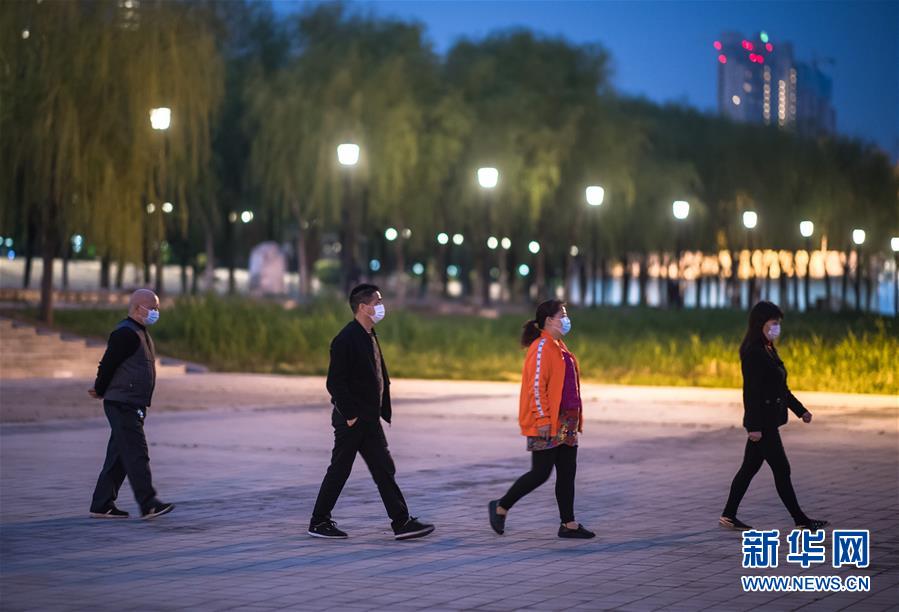 4月1日傍晚,市民在江堤上健身。新華社記者費茂華攝