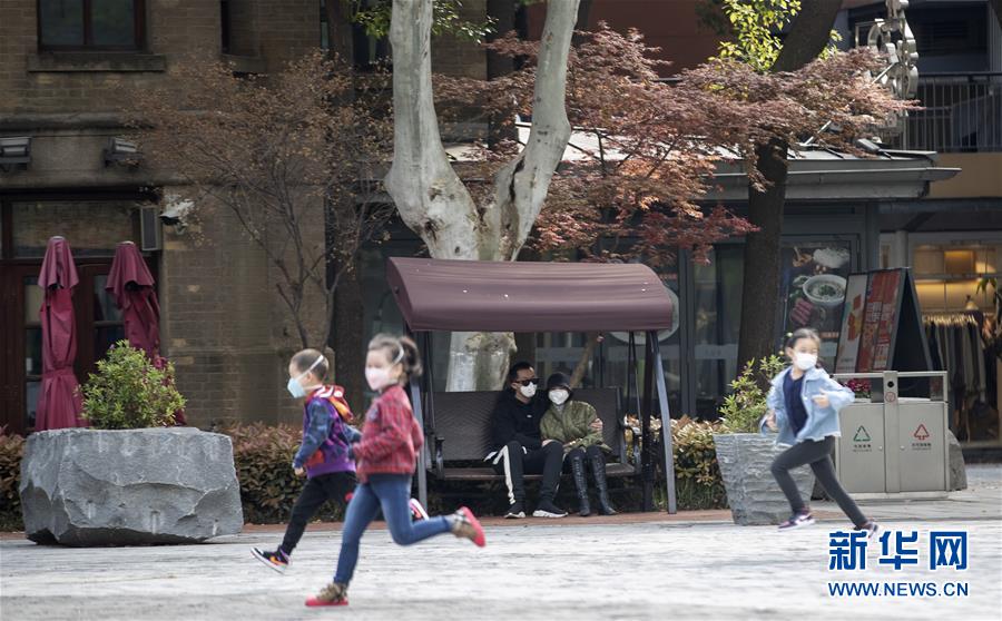 4月1日,在武漢天地廣場,幾個小朋友在玩耍。新華社記者費茂華攝