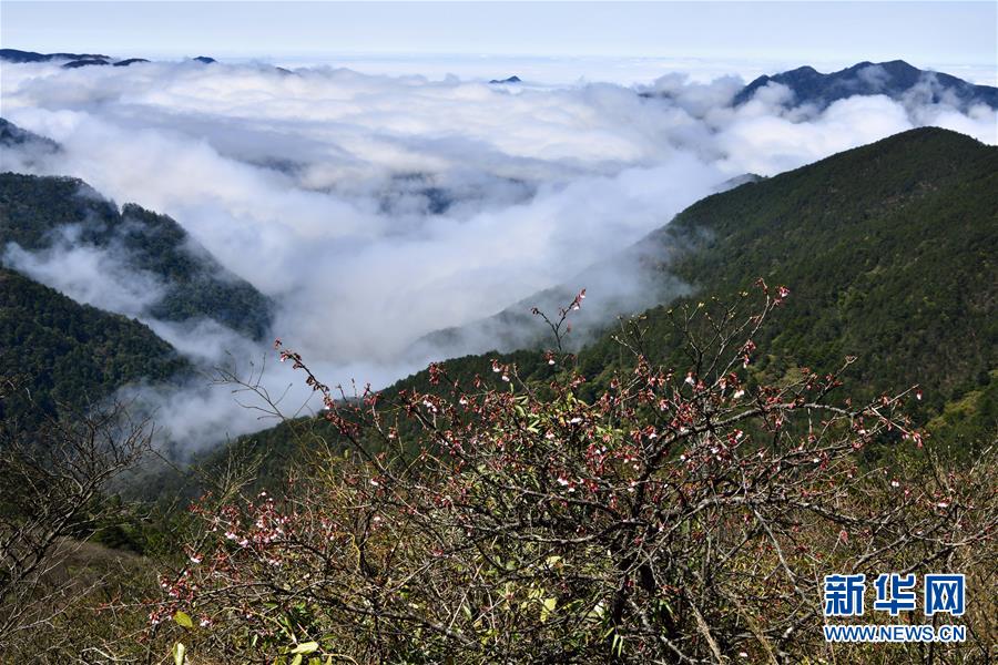 站在武夷山國家公園最高峰黃崗山遠望云霧繚繞的群峰(4月1日攝)。 新華社記者 姜克紅 攝