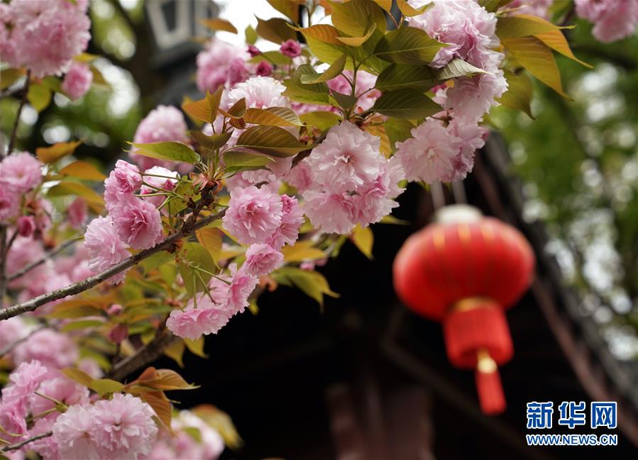 在位于上海松江的江南古典園林——醉白池,晚櫻盛放(4月6日攝)。 新華社記者 劉穎 攝