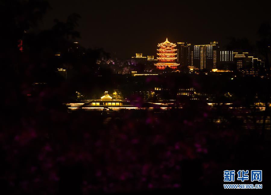 這是4月7日晚在武漢龜山拍攝的黃鶴樓夜景。新華社記者肖藝九攝