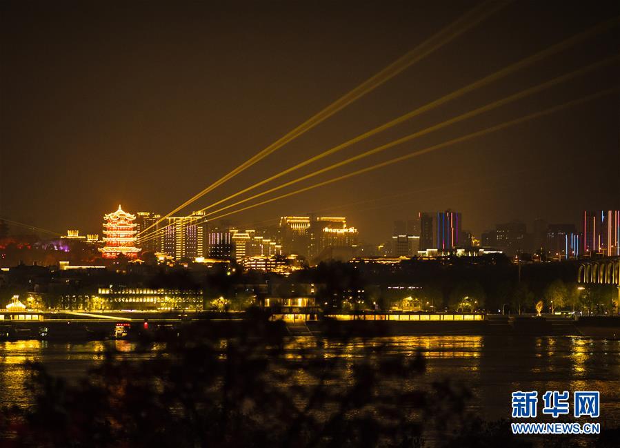 這是4月7日晚在武漢龜山拍攝的黃鶴樓夜景。新華社記者肖藝九攝