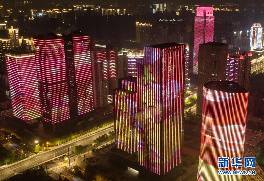 4月8日零時(shí)起,武漢市正式解除離漢離鄂通道管控措施,全市景觀照明開(kāi)啟(無(wú)人機(jī)拍攝)。新華社記者程敏攝