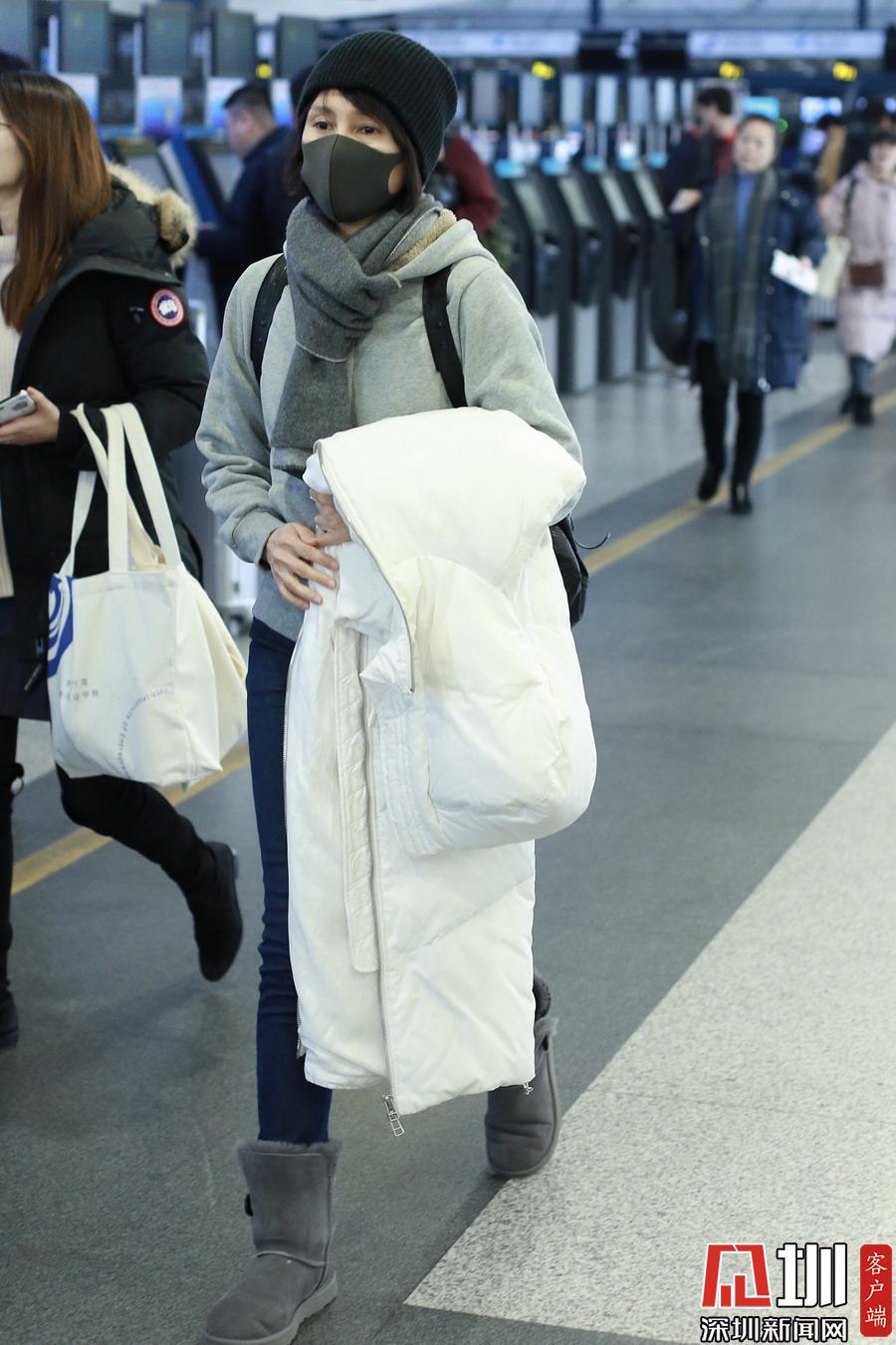 2019年1月5日,北京,袁泉現(xiàn)身機(jī)場。