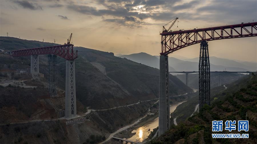 4月8日清晨,工人在中老鐵路元江特大橋上進(jìn)行鋼桁梁架設(shè)作業(yè)(無人機(jī)照片)。4月7日,中老鐵路全線重點(diǎn)控制性工程——元江特大橋迎來關(guān)鍵節(jié)點(diǎn),主橋鋼桁梁正式“邁”過154米高的主橋墩,這是世界同類鐵路橋梁第一高墩。元江特大橋位于云南省元江縣,采用上承式連續(xù)鋼桁梁跨越峽谷,全長832.2米,建成后,其249米的主跨也將刷新國內(nèi)同類橋梁跨度紀(jì)錄。新華社記者江文耀攝