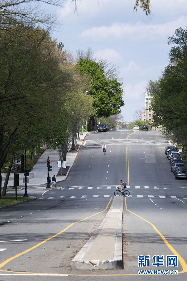 4月8日,在美國首都華盛頓,市民在空曠的街道上騎行。美國約翰斯·霍普金斯大學8日發(fā)布的新冠疫情最新統(tǒng)計數(shù)據(jù)顯示,美國確診病例超過40萬例。美國目前是全球確診病例最多的國家。數(shù)據(jù)顯示,截至美國東部時間8日12時30分(北京時間9日0時30分),美國新冠確診病例升至401166例,死亡12936例。新華社記者劉杰攝