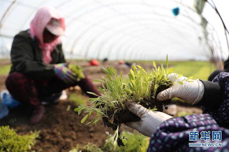 4月13日,花農(nóng)在八角臺(tái)街道雅化村一塊花圃內(nèi)分揀培育好的花苗。新華社記者姚劍鋒攝