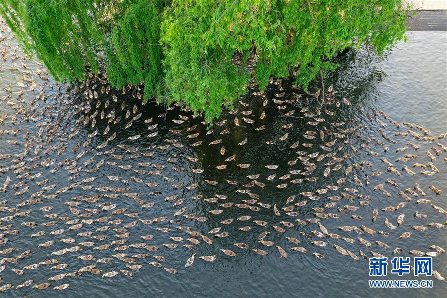 這是4月15日在高郵鴨良種繁育中心拍攝的鴨群(無人機照片)?!案哙]鴨蛋”是江蘇高郵的特色農業(yè)名片。近年來,當?shù)卦诹挤N繁育、生態(tài)養(yǎng)殖、產品加工等方面加大力度,推動高郵鴨蛋品牌化建設,讓小鴨蛋成為帶動農戶致富的大產業(yè)。2019年,高郵市共計生產熟制鴨蛋產品近11.2億枚,年產值近17.68億元。新華社記者季春鵬攝