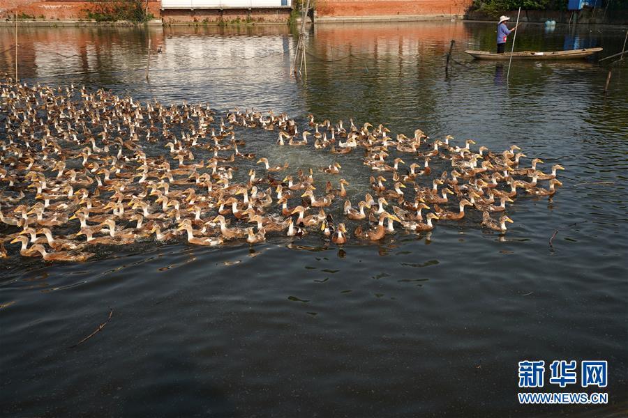 這是4月15日拍攝的江蘇高郵鴨良種繁育中心里的鴨群?!案哙]鴨蛋”是江蘇高郵的特色農業(yè)名片。近年來,當?shù)卦诹挤N繁育、生態(tài)養(yǎng)殖、產品加工等方面加大力度,推動高郵鴨蛋品牌化建設,讓小鴨蛋成為帶動農戶致富的大產業(yè)。2019年,高郵市共計生產熟制鴨蛋產品近11.2億枚,年產值近17.68億元。新華社記者韓瑜慶攝