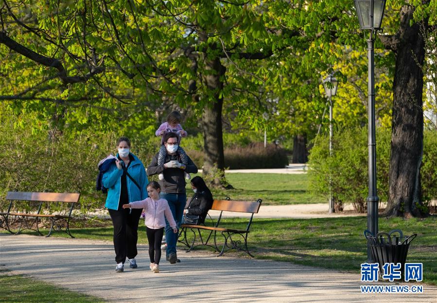 4月20日,人們在波蘭華沙的克拉辛斯基公園里散步。新華社記者周楠攝