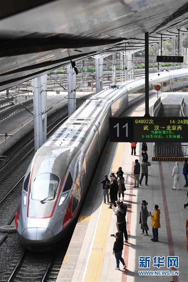 4月8日,G4802次列車駛?cè)氡本┪髡?。新華社記者鞠煥宗攝
