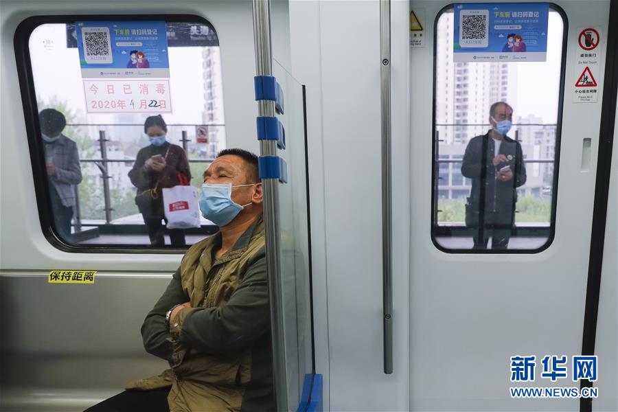 4月22日,乘客乘坐武漢軌道交通一號線出行。為建立與經(jīng)濟社會發(fā)展和疫情防控需要相適應(yīng)的運輸服務(wù)保障機制,保障市民出行需求,從4月22日起,武漢城市公共交通有序恢復(fù)全線網(wǎng)運營。新華社記者沈伯韓攝
