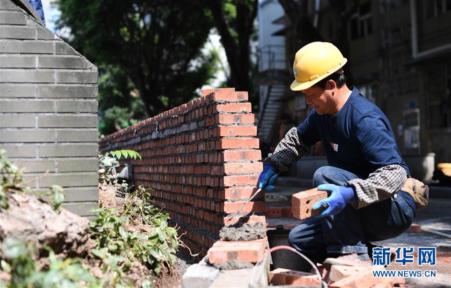 4月26日,工人在渝中區(qū)大溪溝街道雙鋼路社區(qū)改造提升項(xiàng)目施工現(xiàn)場作業(yè)。近段時(shí)間以來,重慶市渝中區(qū)大溪溝街道加快推進(jìn)轄區(qū)內(nèi)老舊小區(qū)改造提升工作,從環(huán)境衛(wèi)生、房屋管理及養(yǎng)護(hù)、安防及車輛管理、綠化管理等方面進(jìn)行綜合改造提升,以增強(qiáng)社區(qū)居民的幸福感、獲得感、安全感。新華社記者王全超攝