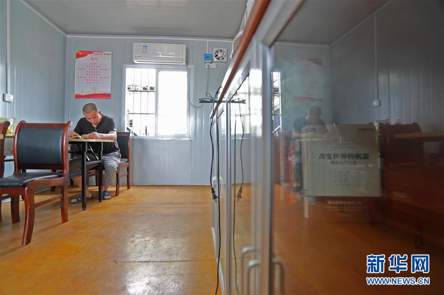4月25日,一名工人在圖書(shū)室內(nèi)閱讀。新華社記者盧燁攝