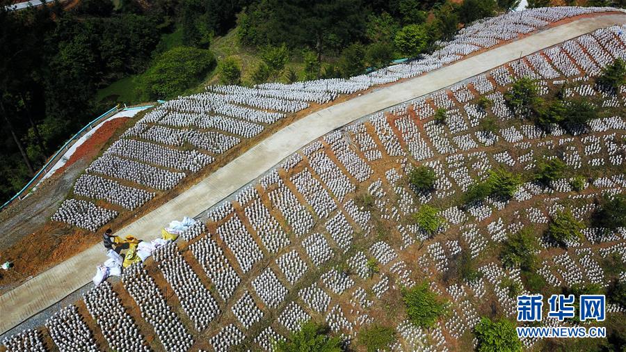 這是4月26日拍攝的劍河縣關(guān)口萬畝生態(tài)農(nóng)業(yè)示范基地培育的木耳(無人機(jī)照片)。近年來,貴州省黔東南苗族侗族自治州劍河縣充分利用林下土地培育木耳,既不耽誤林木生長,又發(fā)展了食用菌產(chǎn)業(yè)。目前,該縣采取“龍頭企業(yè)+合作社+貧困戶”的合作模式,大力推廣林下木耳種植,帶動(dòng)農(nóng)民增收。新華社記者楊文斌攝