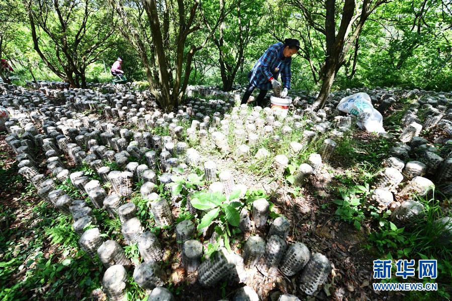 村民在劍河縣岑松鎮(zhèn)巫亮村林下仿野生食用菌基地采摘木耳(4月27日攝)。近年來,貴州省黔東南苗族侗族自治州劍河縣充分利用林下土地培育木耳,既不耽誤林木生長,又發(fā)展了食用菌產(chǎn)業(yè)。目前,該縣采取“龍頭企業(yè)+合作社+貧困戶”的合作模式,大力推廣林下木耳種植,帶動(dòng)農(nóng)民增收。新華社記者楊文斌攝