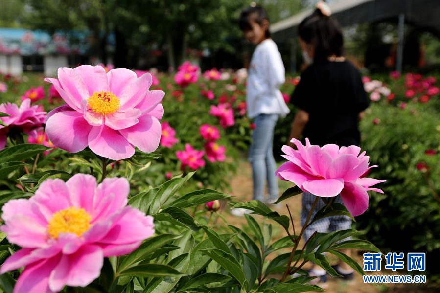 5月2日,游客在河北省邢臺(tái)市柏鄉(xiāng)縣漢牡丹園觀賞芍藥花?!拔逡弧奔偃掌陂g,人們以多種方式放松心情、享受假日。新華社發(fā)(李雪其攝)